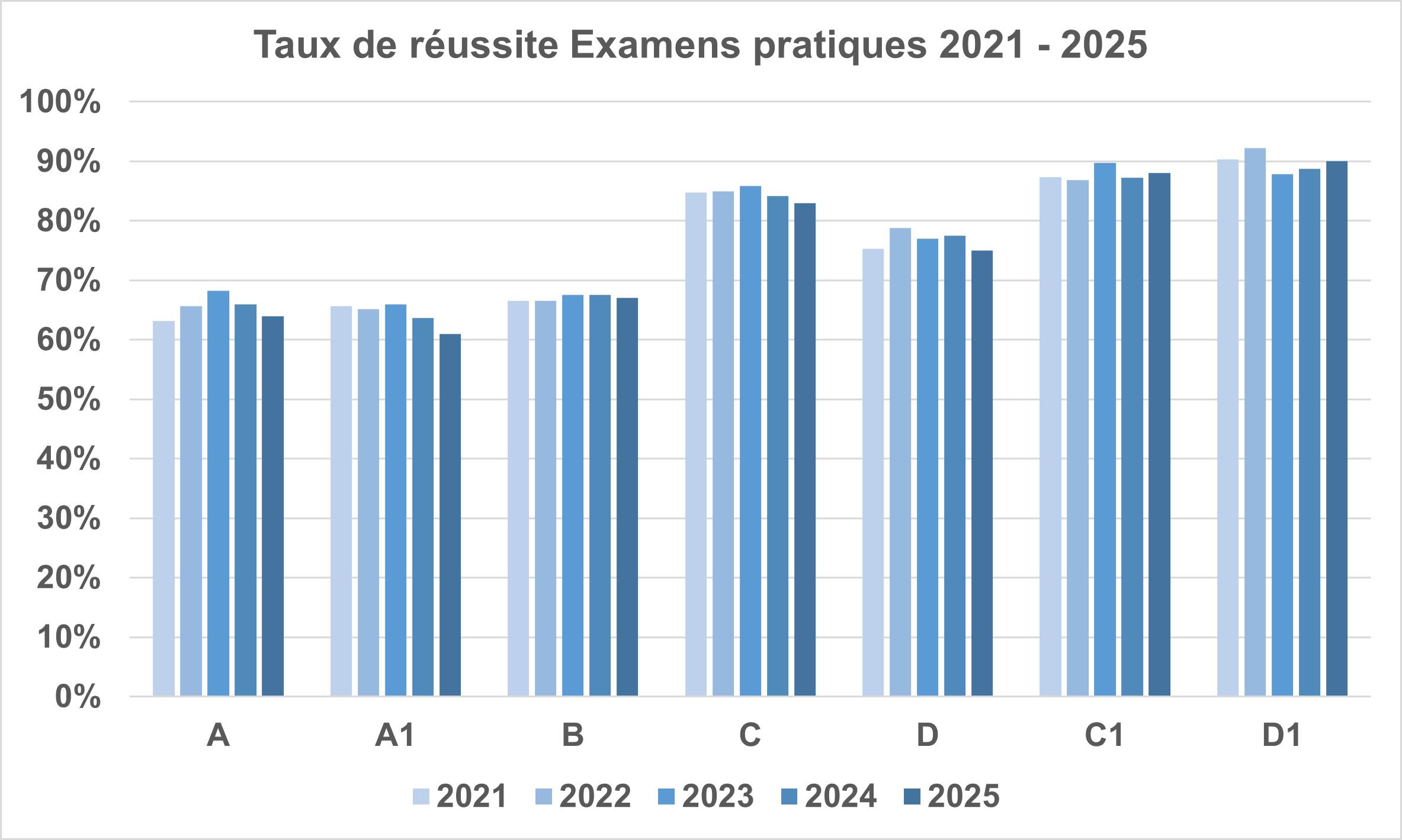Les examens théoriques ont de nouveau augmenté dans toutes les catégories en 2025.