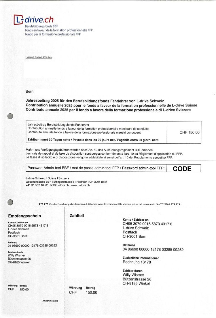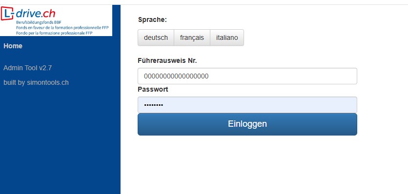 Con il numero della tua patente di guida e la password indicata sulla fattura del BBF puoi accedere allo strumento admin del FFP.